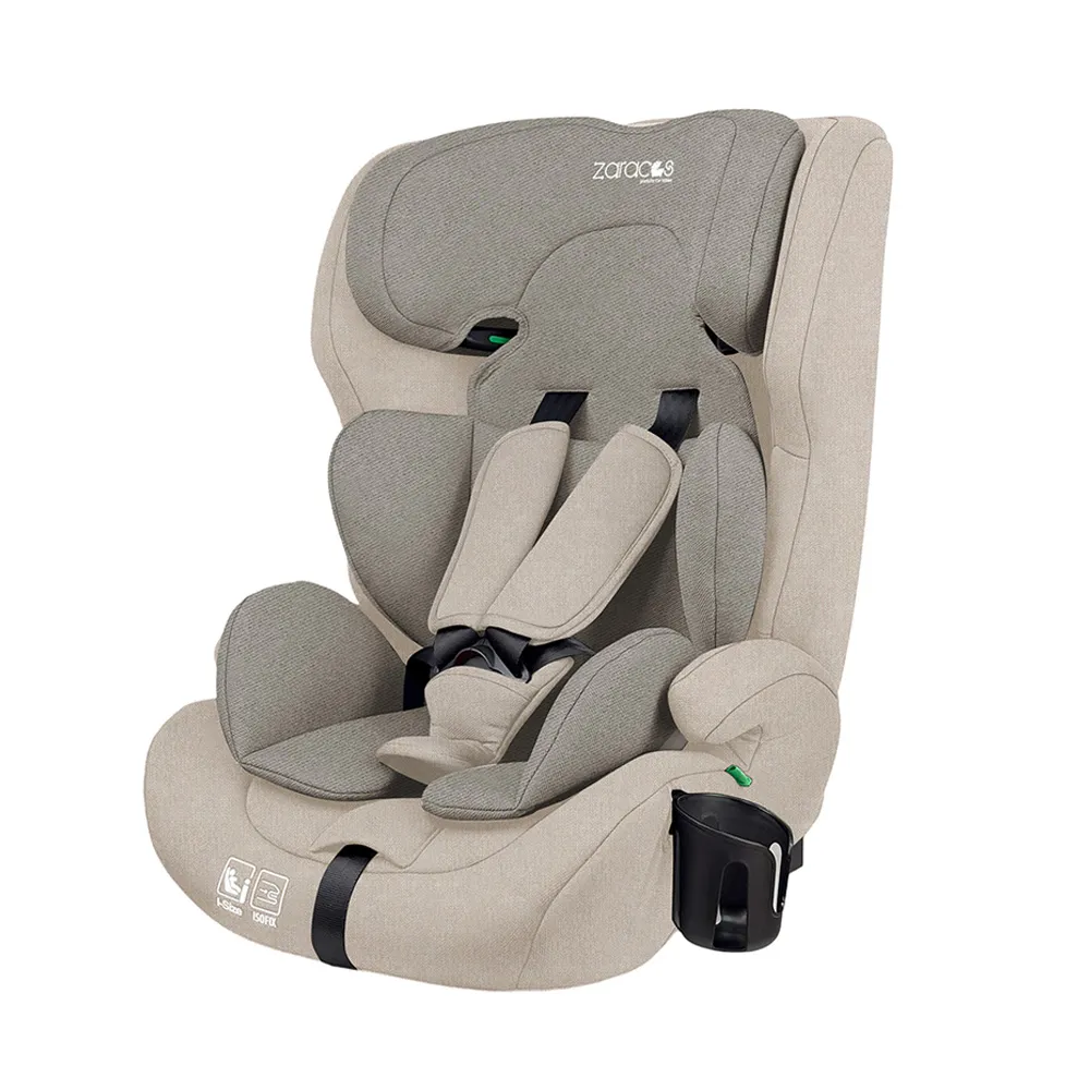 Khi bé cao từ 100–150 cm, Zaracos Tobias 7076 chuyển sang chế độ ghế nâng lưng cao (i-Size booster seat) và sử dụng dây đai an toàn 3 điểm của xe.